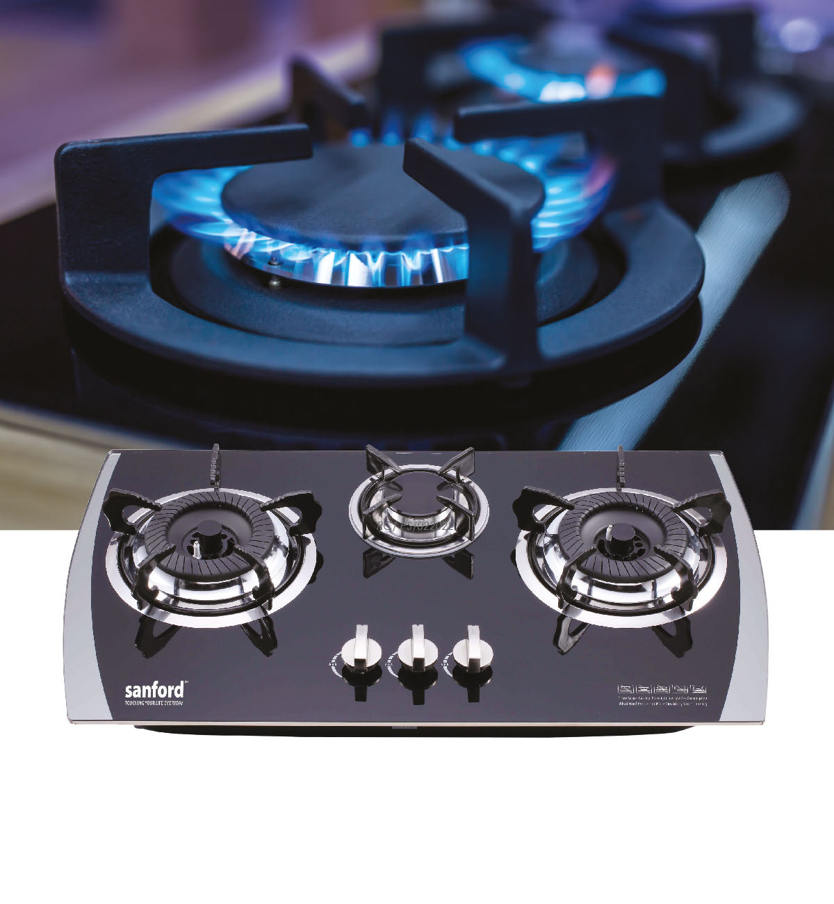 Sanford Extra Hard Tempered Glass Top 3 Burner Pantry Top Gas Cooker - SF 5404GC